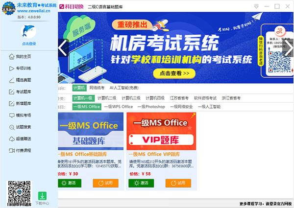 5、紧扣考试大纲,精选于题库,全真模拟考试环境,常用科目均陪400-600题,未来教育考试系统正版用户可以在线升级题库。