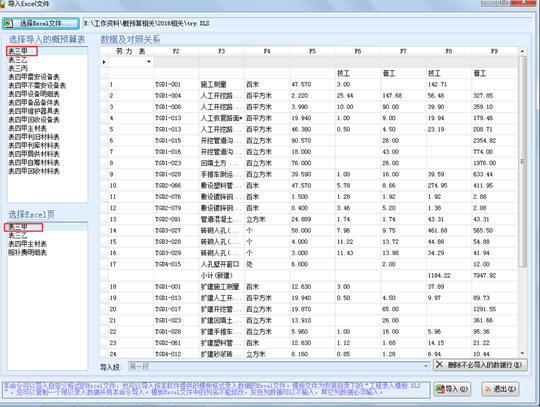 左键单击“常用”——“工程文件”——“Excel导入”,即可在一个对话框中完成所有操作。