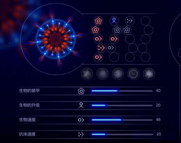 4、在“进化”栏里,可用获得的基因提升生物4个方面强度。