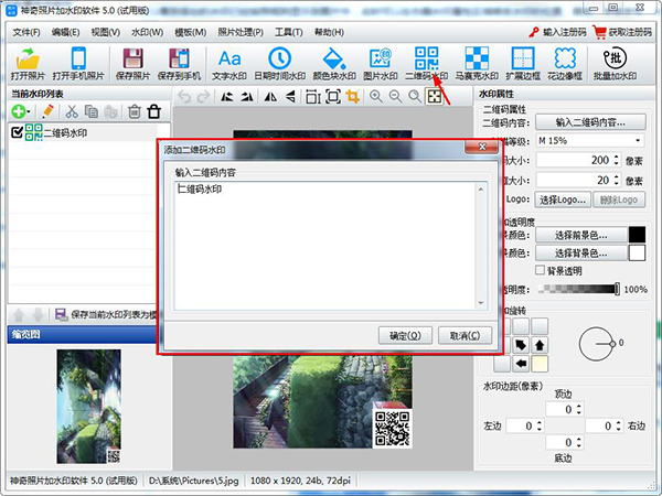 点击“二维码水印”按钮,弹出如下界面: