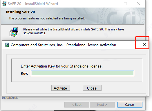 3、在安装的过程中遇到提示输入KEY,那么先关闭窗口对其进行安装先;