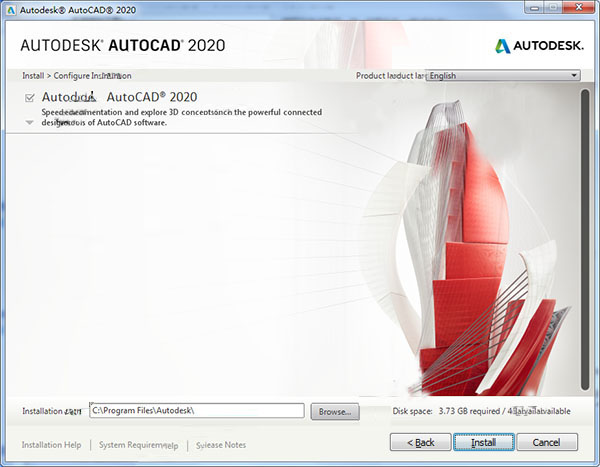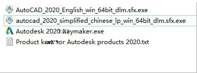 2、之后双击文件“AutoCAD_2020_English_win_64bit_dlm.sfx.exe”开始安装软件,默认解压到【C:\Autodesk\】