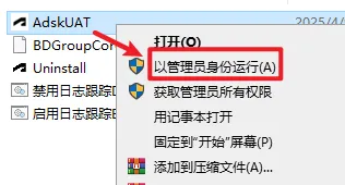 7、返回到解压目录找到Crack文件夹里的AdskUAT目录,用管理员权限运行其中的AdskUAT.exe程序即可。