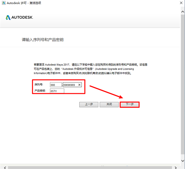 8、将生成的激活码复制到激活码输入框,点击“下一步”