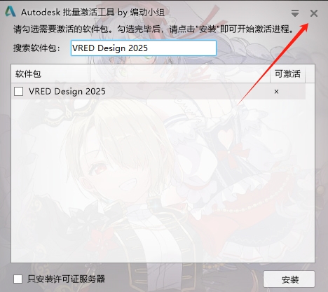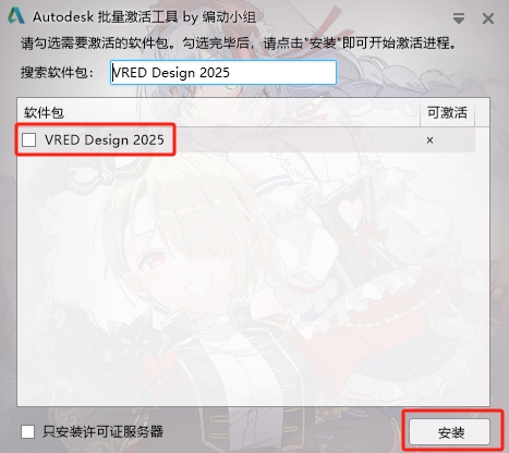 8、找到并勾选【VRED Design 2025】程序,再点击【安装】。