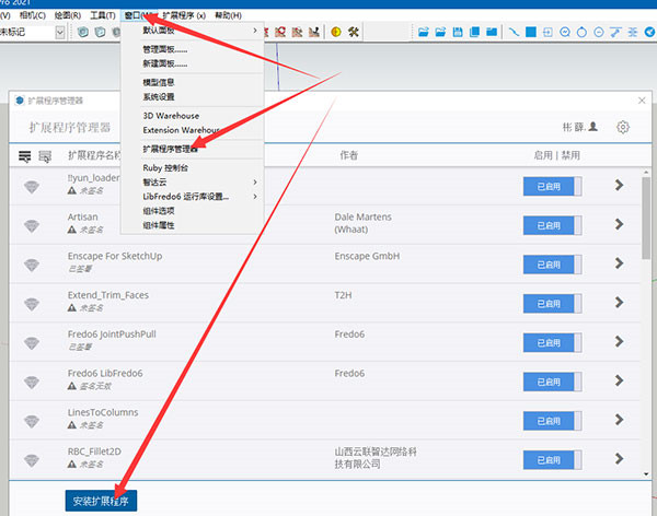 4、如果是SU2021请在SU扩展程序管理器里安装 SU2021兼容补丁