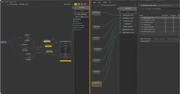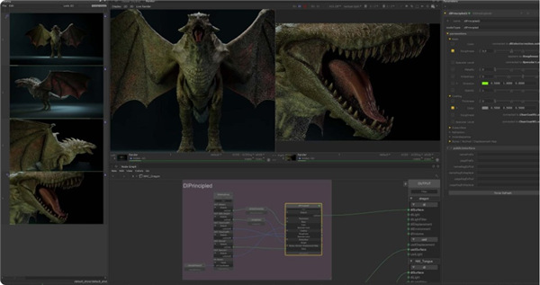武士刀的网络素材创建节点现在可以在一个NMC节点内创建和管理多个素材,而网络素材编辑节点附带了额外的用户界面/UX增强功能,支持针对不同节点状态的用户界面过滤选项。两者都由一个本地的USD/Hydra插件支持,该插件允许Katana为表面材料创作、消费和编辑USD预览表面信息。