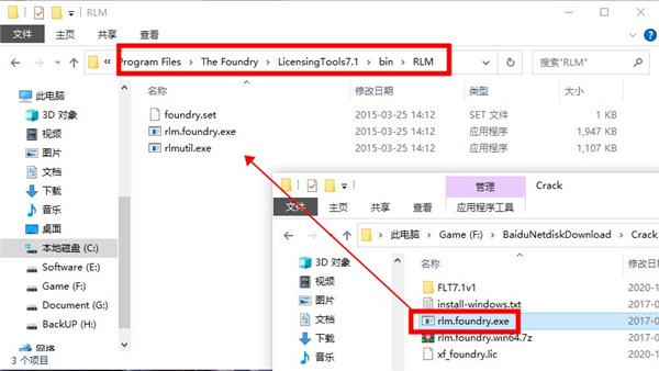 8、将“rlm.foundry.exe”文件复制到FLT 7目录下选择替换操作