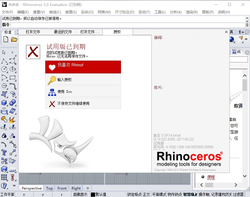 13、运行并进入Rhino5,点击输入授权。