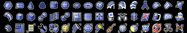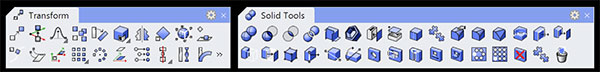 变动工具: 剪切、复制、粘贴、移动、旋转、镜像、缩放、延伸、对齐、阵列、扭转、弯曲、锥形化、倾斜、偏移、定位、沿着曲线流动、拉回、投影、方块编辑、压平、展开。