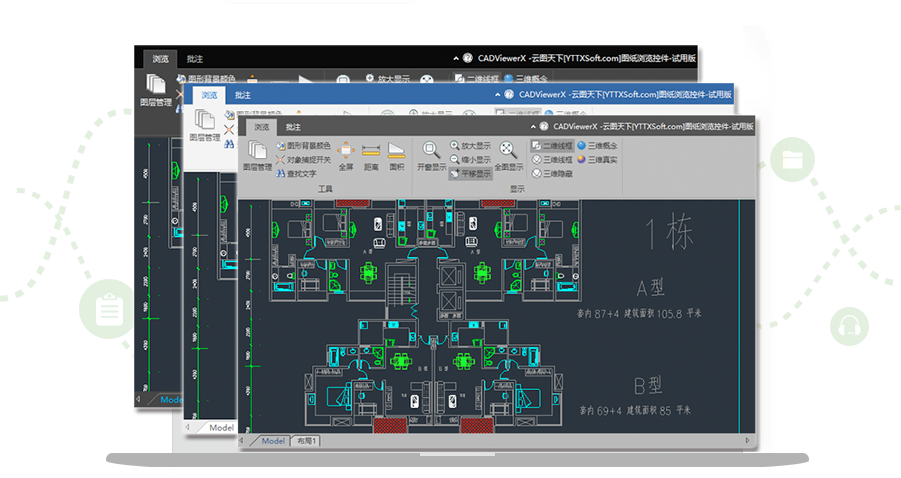 实现对图纸的图层进行“显示”“冻结”“锁定”的更改操作;支持模型空间与布局空间的自由切换。