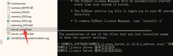 8、随后以管理员的身份运行文件夹里面的“server_install.bat”并等待直到新服务“ NUMECA License Server”将被安装并启动