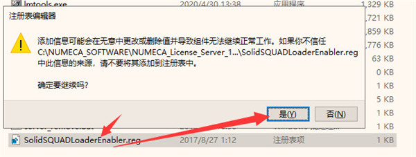 10、运行“ NUMECA_License_Server_11.16.4.0_x64 \ SolidSQUADLoaderEnabler.reg”,并确认将信息添加到Windows注册表中