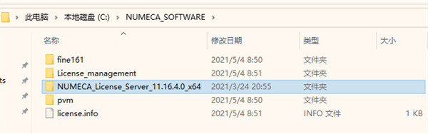 7、安装完成后先不要运行,回到刚才下载的数据包中将“NUMECA_License_Server_11.16.4.0_x64”文件夹复制到软件的安装目录中