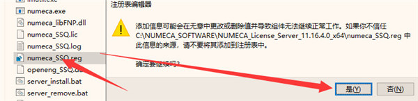 9、运行“ NUMECA_License_Server_11.16.4.0_x64 \ numeca_SSQ.reg”,然后确认将信息添加到Windows注册表中