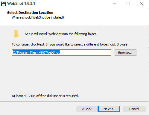 3、选择安装软件位置目录放置,默认为C:\Program Files (x86)\WebShot