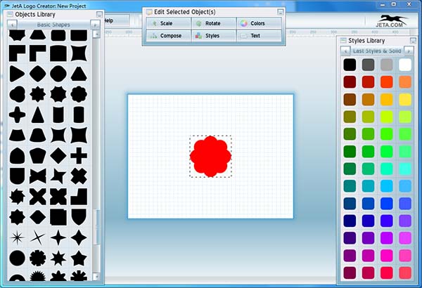 1、Jeta Logo Creator提供丰富的设计功能2、软件界面直接显示图标和颜色功能