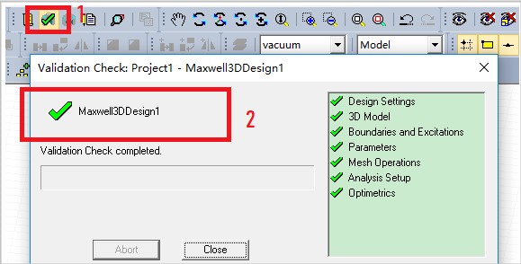 11、点击菜单栏如1所示图标,检查设计是否合法,出现2,则说明没问题。