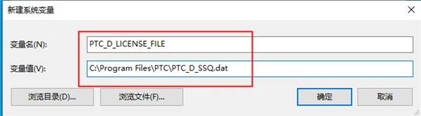 变量名为:PTC_D_LICENSE_FILE