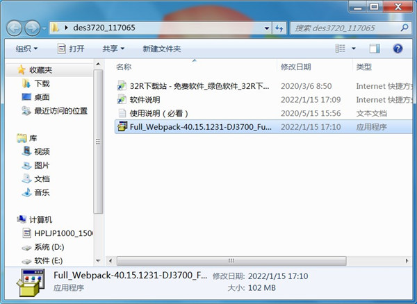 1、从本站下载惠普2720驱动压缩包后,接着双击“Full_Webpack-40.15.1231-DJ3700_Full_Webpack.exe”开始安装;