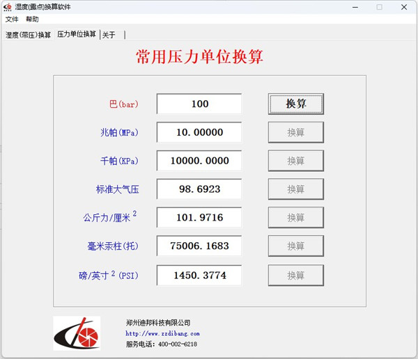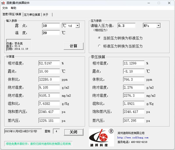 温度、湿度换算点击【温度(带压)换算】,输入露点、温度参数,点击【计算】,即可得出结果