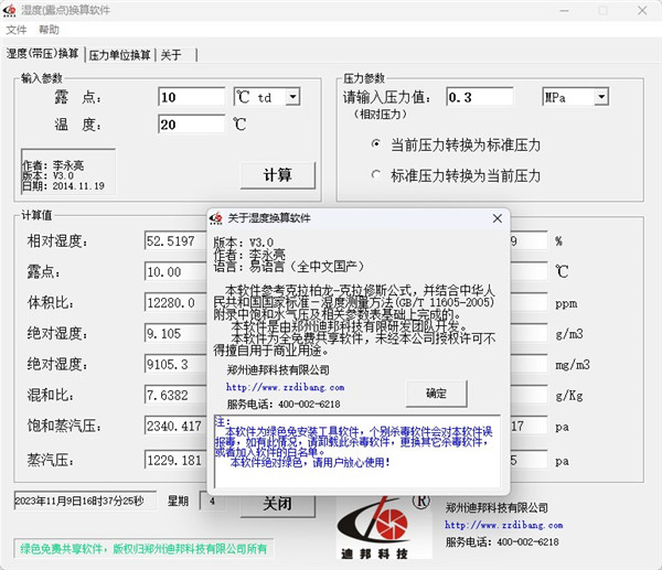 1、湿度计算与转换简单易行2、输入一个已知参数,方便计算出多个其它湿度参数。在不同的环境条件下(比如温度和压力不同)