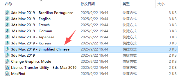 8、安装完成后在软件路径,找到3ds Max 2019 - Simplified Chinese运行,这个版本是中文版本切记;