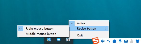 5、在其托盘图标的右键菜单选项中,我们可以激活与禁用它,或者将更改窗口尺寸的鼠标按键更改为滚轮。