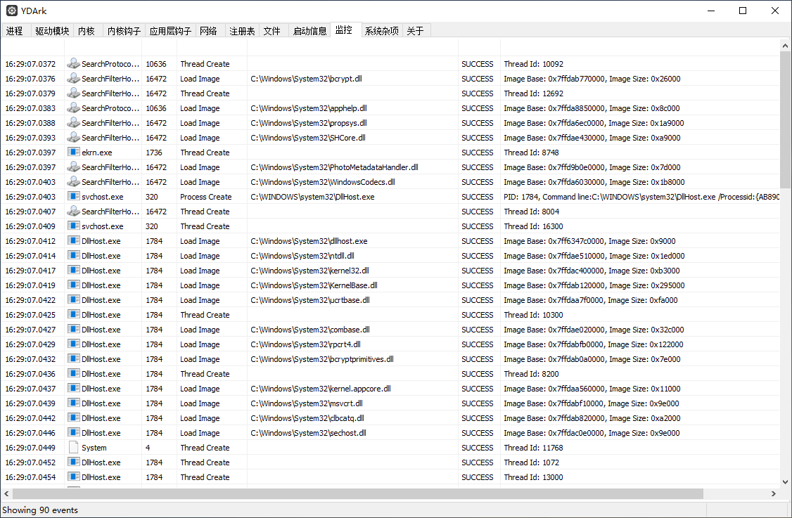 10、监视创建退出进程/创建线程/加载映像/加载驱动程序/远程线程注入。