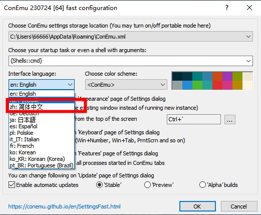 进入ConEmu软件可以在语言选择中,选择简体中文即可!