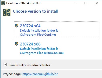 1、解压数据包用鼠标双击“ConEmu.exe”打开,选择合适自己电脑系统的安装。