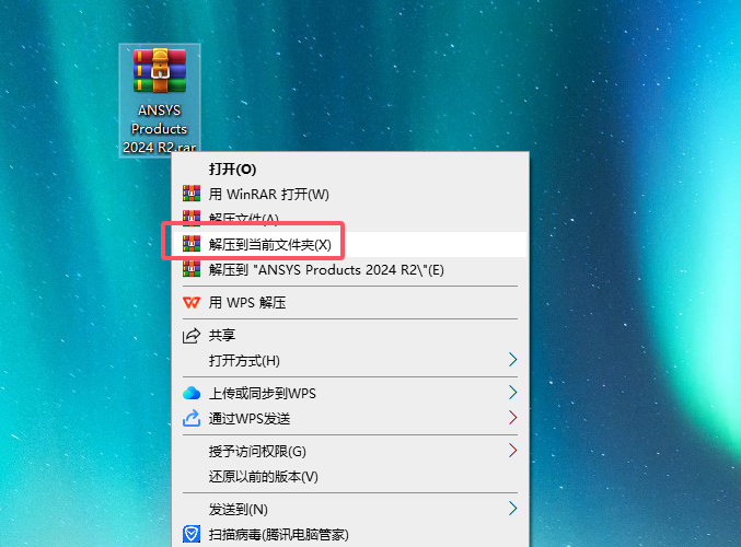 2、选择【ANSYS2024R2_WINX64_DISK1.iso】鼠标右键,点击【装载】,如果没有装载,就选择(解压到"ANSYS2024R2 WINX64 DISK1\(E))的方式