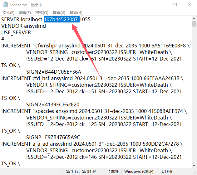 18、打开复制到安装目录路径下的【license.txt】文本,找到【ANY】