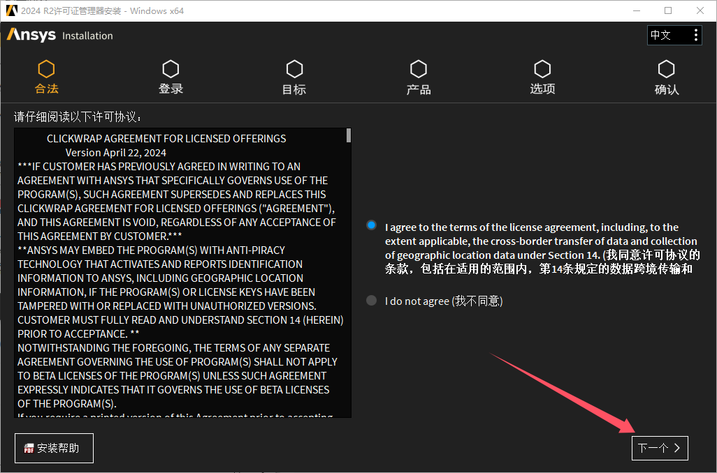 6、许可协议同意,默认勾选,点击【下一个】即可