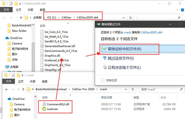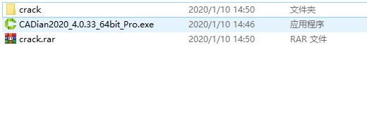 1、下载解压,得到CADian Pro 2020 v4.0.33原程序和crack文件夹;