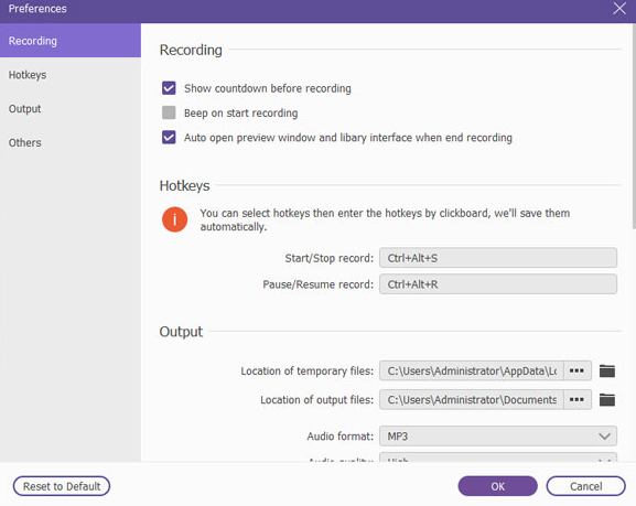 凭借其灵活的音频设置,此录音软件使您能够调整音量,自定义流行格式(如MP3,M4A,WMA,AAC等)提供的输出格式,并为您的项目设置从最低到无损的声音质量。此外,它可以创建录制时间表,以帮助您通过设置指定的开始和停止时间来捕获指定的音频。