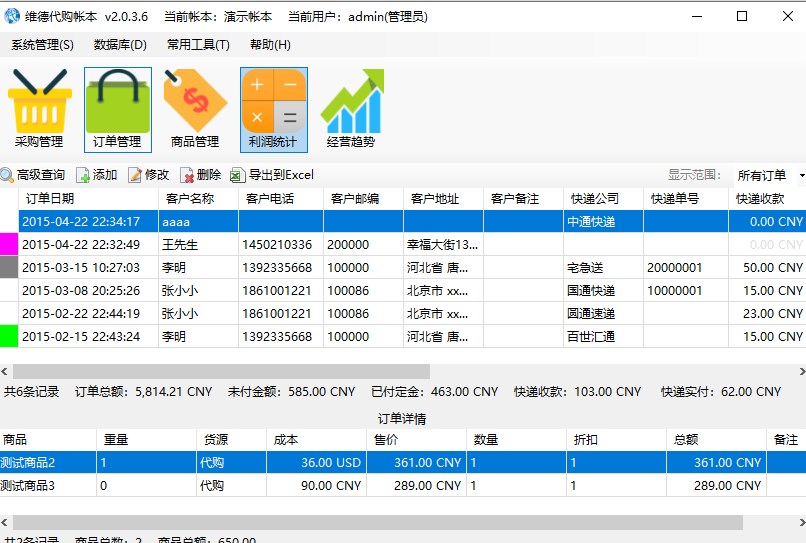 4、可以保存快递信息(快递单号、运费等)