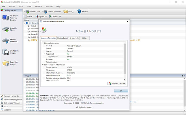 与之前软件相比,Active UNDELETE还可以将分区创建为磁盘映象,避免由于磁盘操作导致已删除数据被覆盖,甚至还可以用虚拟磁盘制作成虚拟RAID卷。而且该版本为Ultimate旗舰版,添加了轻松恢复模式,以及新文件签名,进行了常见的GUI调整和错误修复以及恢复内核功能,提供的功能与分区的工作,以及创建,打开和验证磁盘的映像,可以在所有数据存储设备以不同的方式,以及查找和恢复丢失的数据。