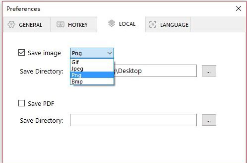 “本地”:你可以方便的将截图转换为本地图片和PDF文件。勾选选项并且配置输出路径;