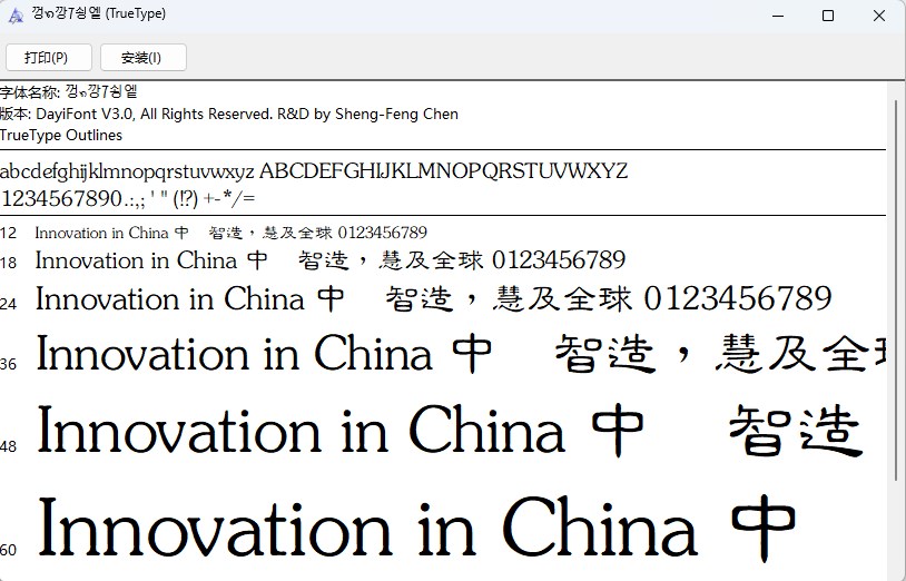 4、字体安装成功,图中就是安装的字体文件