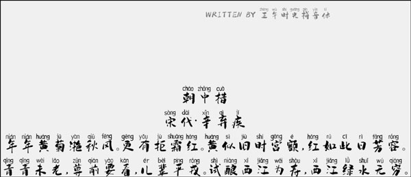汉呈正午时光拼音体是一款以正午时光为基础的拼音字体,同时也是由汉呈字库倾情发布的作品。该字体字型的角度、大小、距离都设计的非常完美,展现了其独特的个性书法,适应于报纸和杂志和书籍中常用字体海报、个性促进品牌标志设计、字体设计、文本装潢、信息展示、篆刻制模英文、数据制作、装潢设计、视觉设计、字帖等一切合法应用场景,有喜欢的朋友可免费下载收藏。