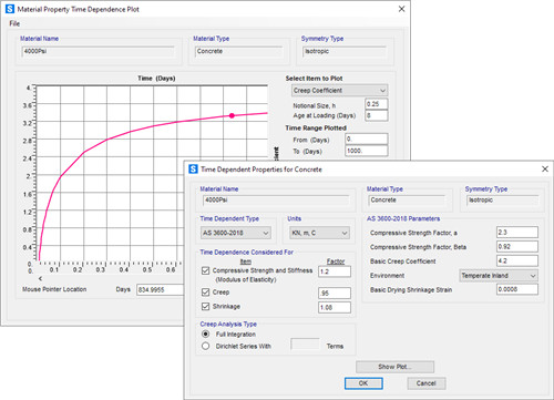 AS3600-2018 规范中添加了混凝土随时间变化的行为,包括徐变、收缩和随年龄变化的刚度。