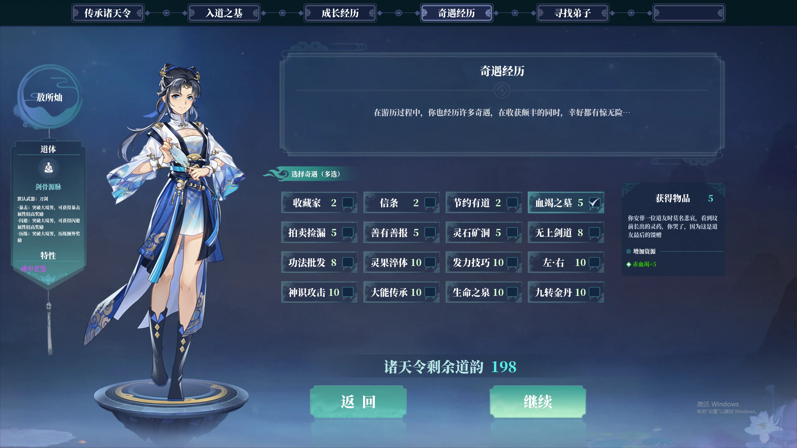 4、奇遇,这里大家只选一个“血竭之墓”或者不选,基于两者的稀有度对比,推荐选择“血竭之墓”(剩余22道韵)。