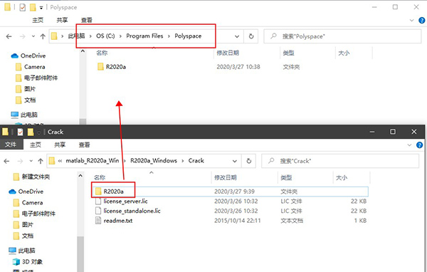 9、安装完成后,将crack文件夹内的R2020a文件夹复制到Polyspace目录下;