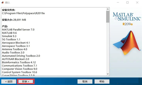 9、然后点击安装就会开始matlab r2019a的安装了,耐心等待一会儿
