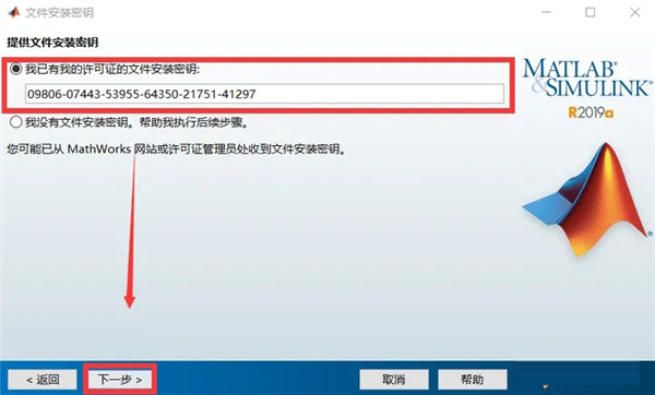 4、选择“我已有我的许可证的文件安装秘钥”,输入序列号9806-07443-53955-64350-21751-41297