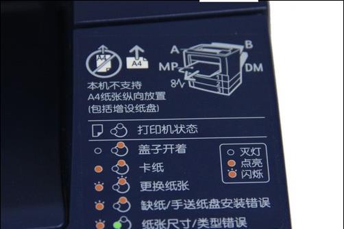 2.外观设计方面,富士施乐DocuPrint 2108b激光打印机同样以简洁实用为特色。机身上部前置蓝色操作面板,按键简洁一看就懂,两个数据按键分别为一键“取消作业”和打印功能,还有状态页键及6个LED指示灯,在打印作业时,用户可以根据显示的状态对打印流程进行判断。机身正面左下角是开关按键,很直观很实用