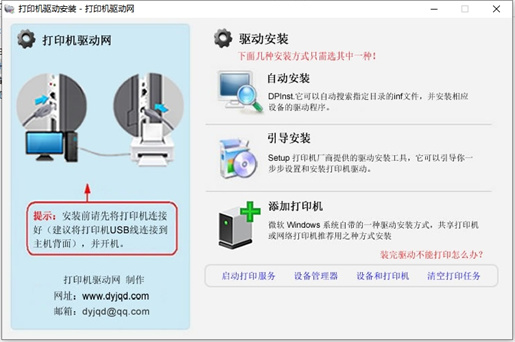 5、安装之后,进入驱动安装界面,提供了自动安装、引导安装、添加打印机三种安装方式;小编提供的是自动安装步骤。