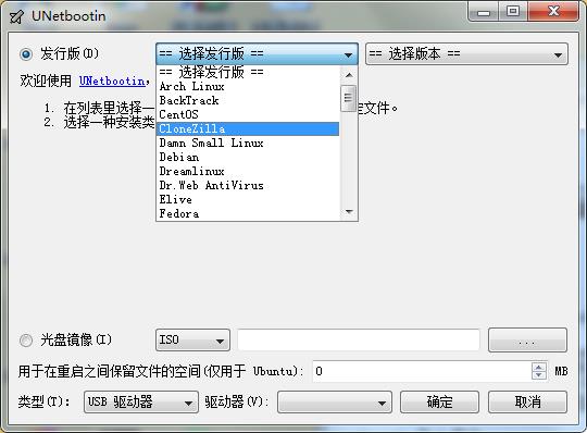 2、如果你没有Linux的iso镜像文件,UNetbootin可以帮您下载各个发行版的iso 文件。如下图