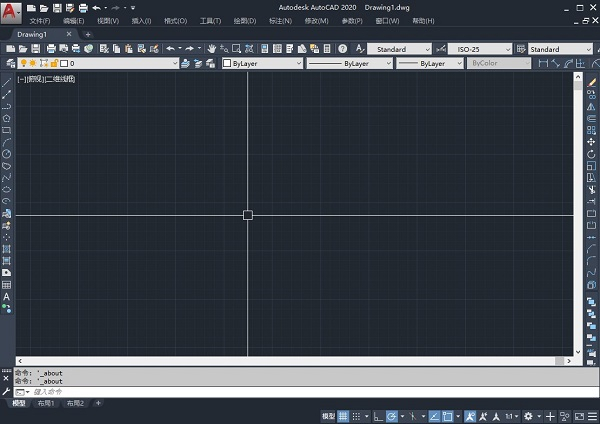 3、安装完成默认AutoCAD 经典空间,喜欢草图及标注界面的朋友可以 工具--工作空间,选择“草图与注释”界面